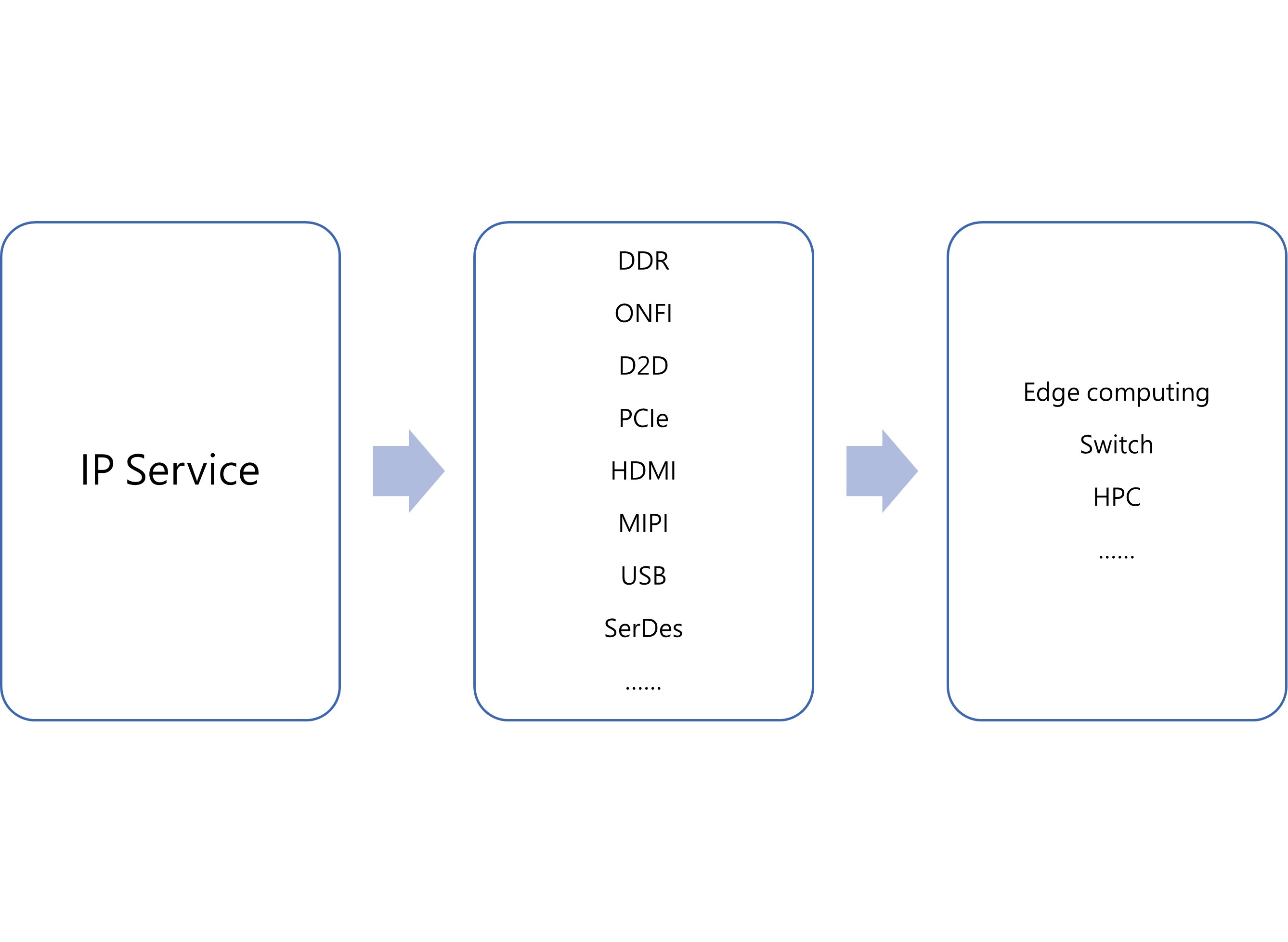 Based on customer requirements, we leverage abundant third-party IP resources, technical support, and project experience to provide IP services applicable across multiple fields, primarily including DDR, PCIe, HDMI, MIPI, and USB. These technologies feature verified reliability, reusability, and specific functionalities that help improve design efficiency. They can be used in independent design phases or directly licensed to clients for design and development. Currently, these IP services are widely applied in the design of various IC products across fields such as edge computing, communication switching (switch), and high-performance computing (HPC).